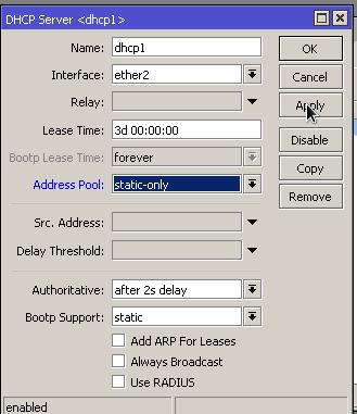 Mikrotik dhcp lease