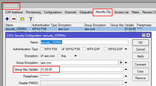 /caps-man security set security1 group-key-update=1h