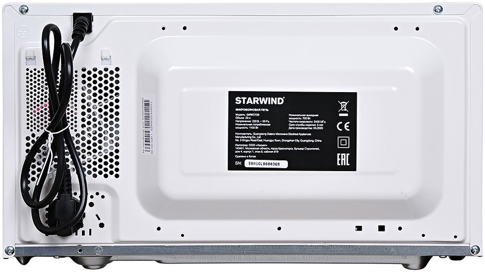 Микроволновая печь starwind swm 5520 .Мощность 700Вт .Объем 20л .Диаметр поворотного стола 25,5см Подробнее Артикул: RM-1316