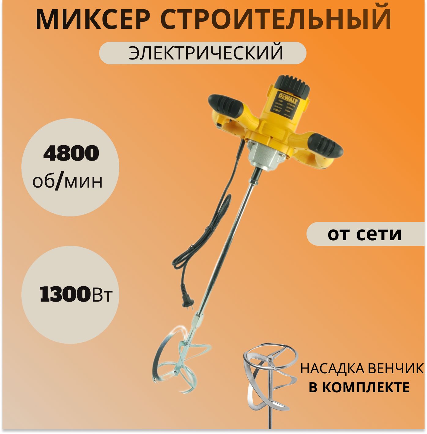 Миксер строительный dewalt