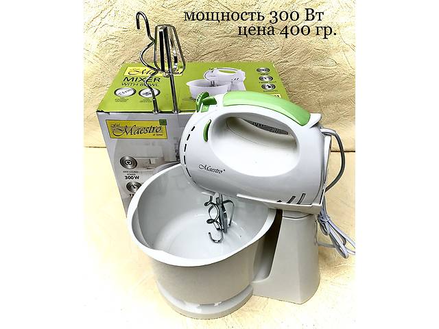290,70 грн . 323 грн . В наличии . Миксер Maestro MR-502 | миксер Маэстро | блендер Маестро (7 скоростей, венчики, насадки для теста) Доставка из г . Харьков . 97% положительных . из 499 отзывов о продавце . Купить . +380 показать номер .