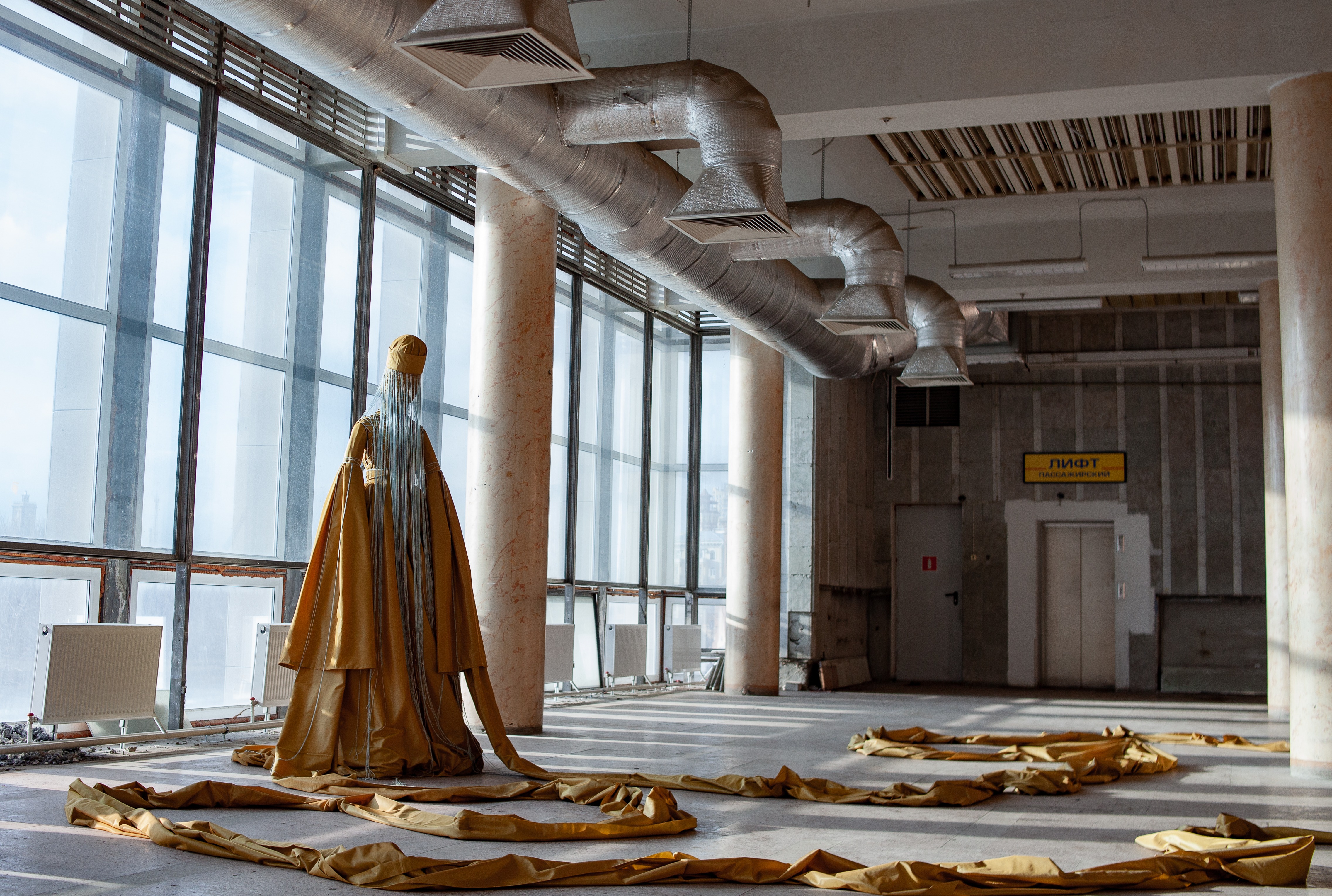 Художница, используя авторскую интерпретацию традиционных адыгских художественных практик, а также иконографию адыгских кукол, и удлиняя на многие метры рукава традиционного адыгского платья, создает убедительный пластический образ плача как красноречивого свидетельства опыта переживания утраты выжившими. Расположенная на фоне окна, из которого видна мемориальная инфраструктура Площади Павших Борцов, инсталляция проблематизирует коммеморативную диспропорцию и ассиметрию памяти об участниках разных войн. Финальная инсталляция художницы — это одновременно и коммеморативный объект, и сценографический прототип, сопровождающий живое исполнение музыкального наследия.
