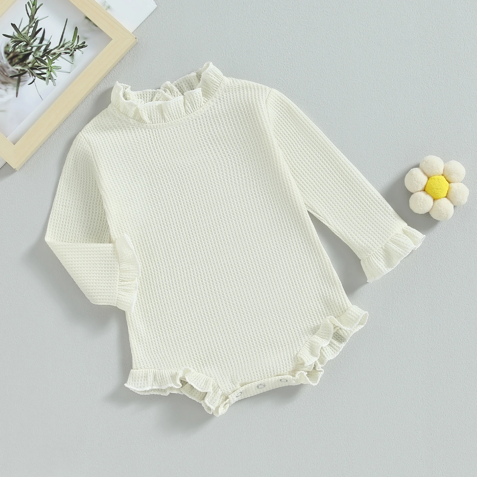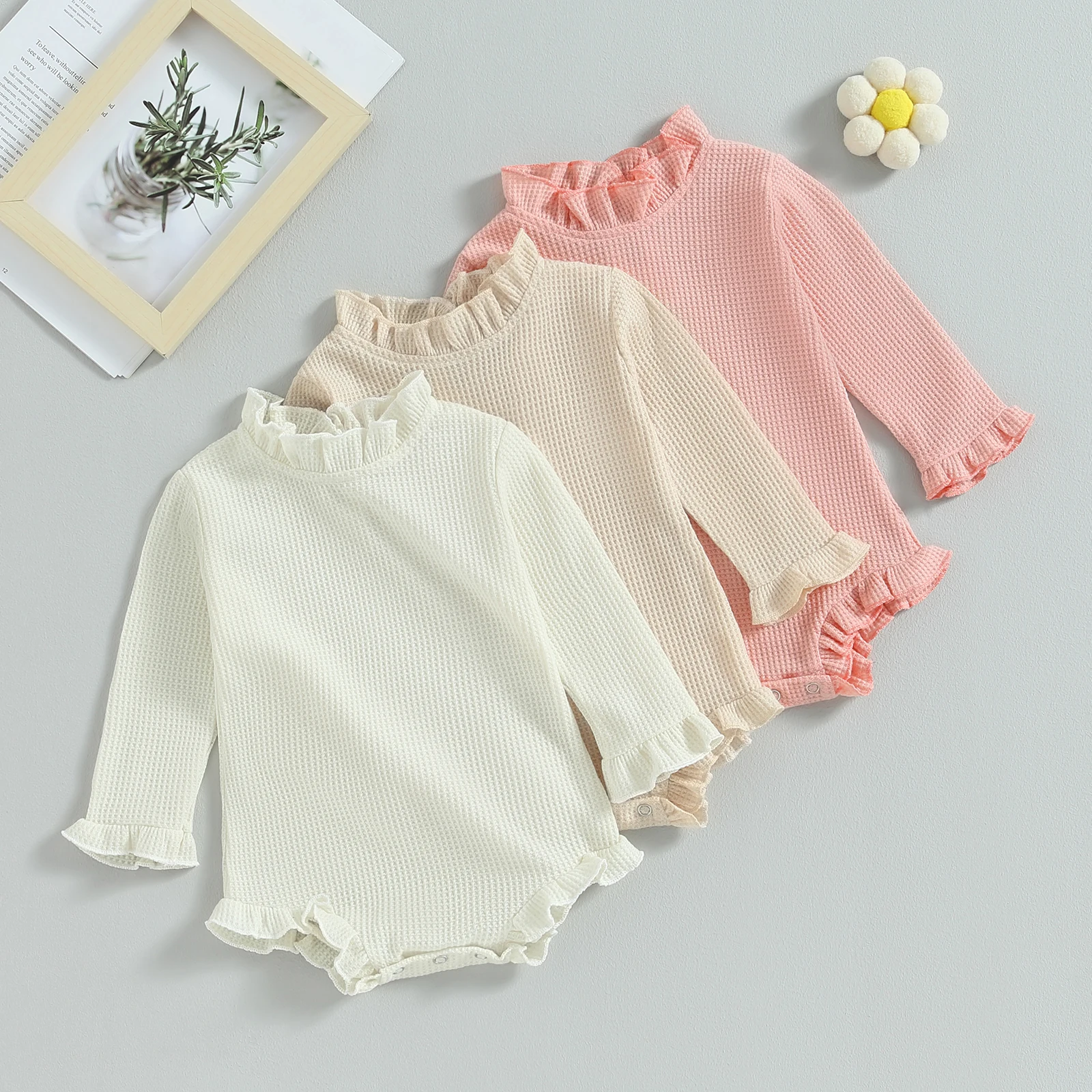 Mildsown Infant Baby Girls Spring Autumn Waffle Plaid Romper Solid Color Long Sleeve Ruffle Trim Collar Princess Clothes Outfits - Купить с бесплатной доставкой