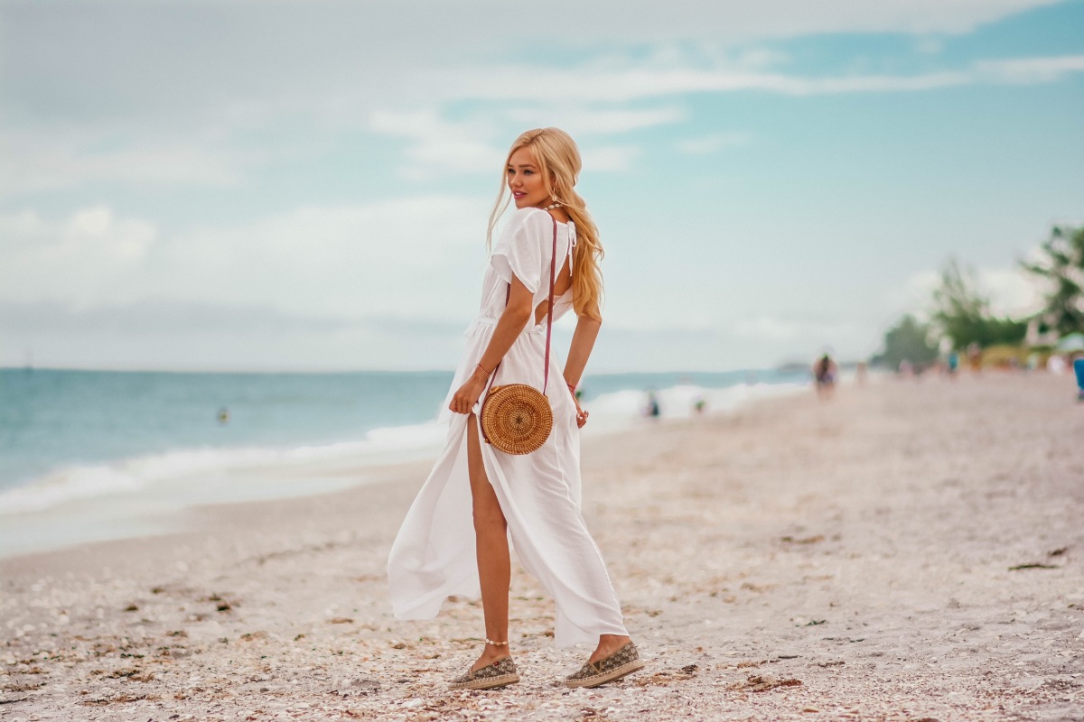 Niesamowita, Gorąca Blondynka zdejmuje bikini i chodzi nago po plaży-Rebekah Cotton