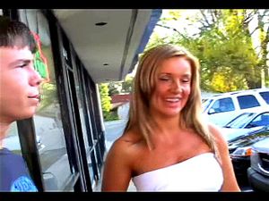 Gorgeous blonde gives a blowjob and gets fucked hard
