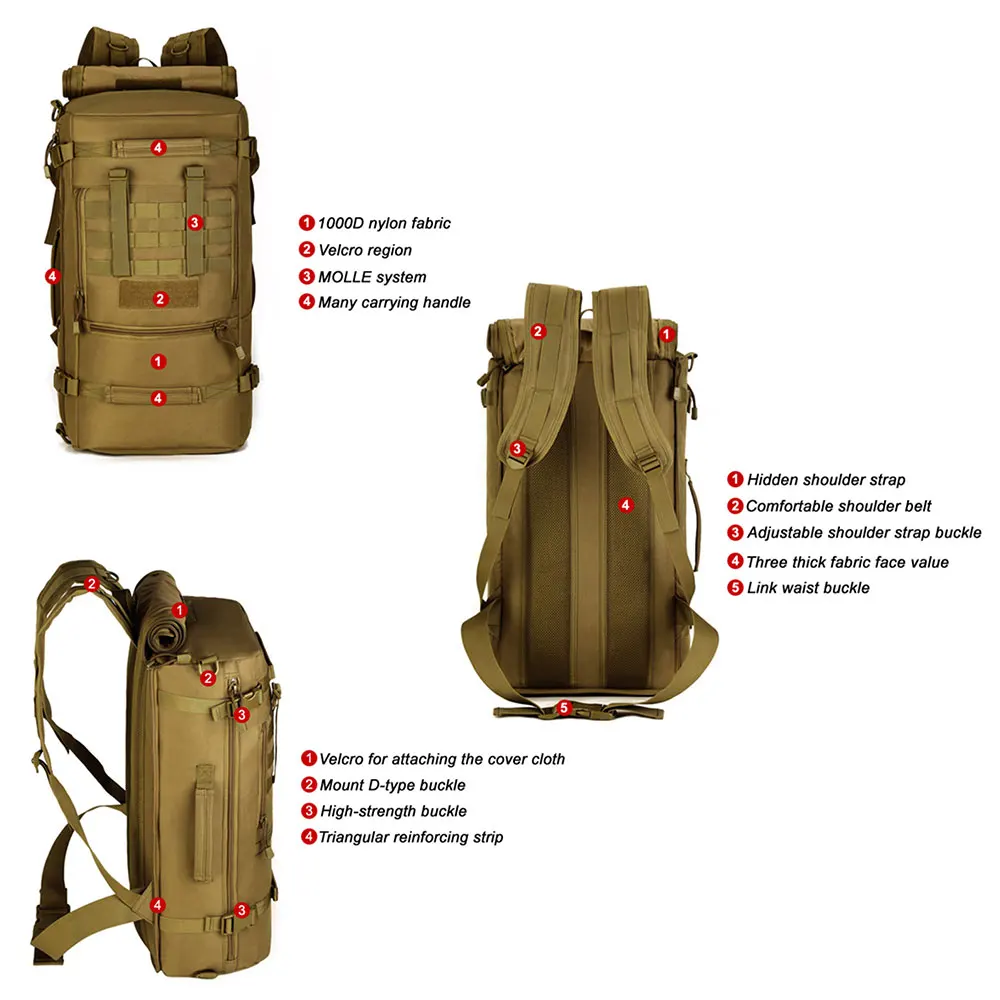 YlOsOyFSHere you can buy Military Tactical Backpack Men 50L Waterproof Large Capacity Bags Assault Pack Army Backpacks Camping Hunting Trekking Rucksacks with free delivery to your post office.