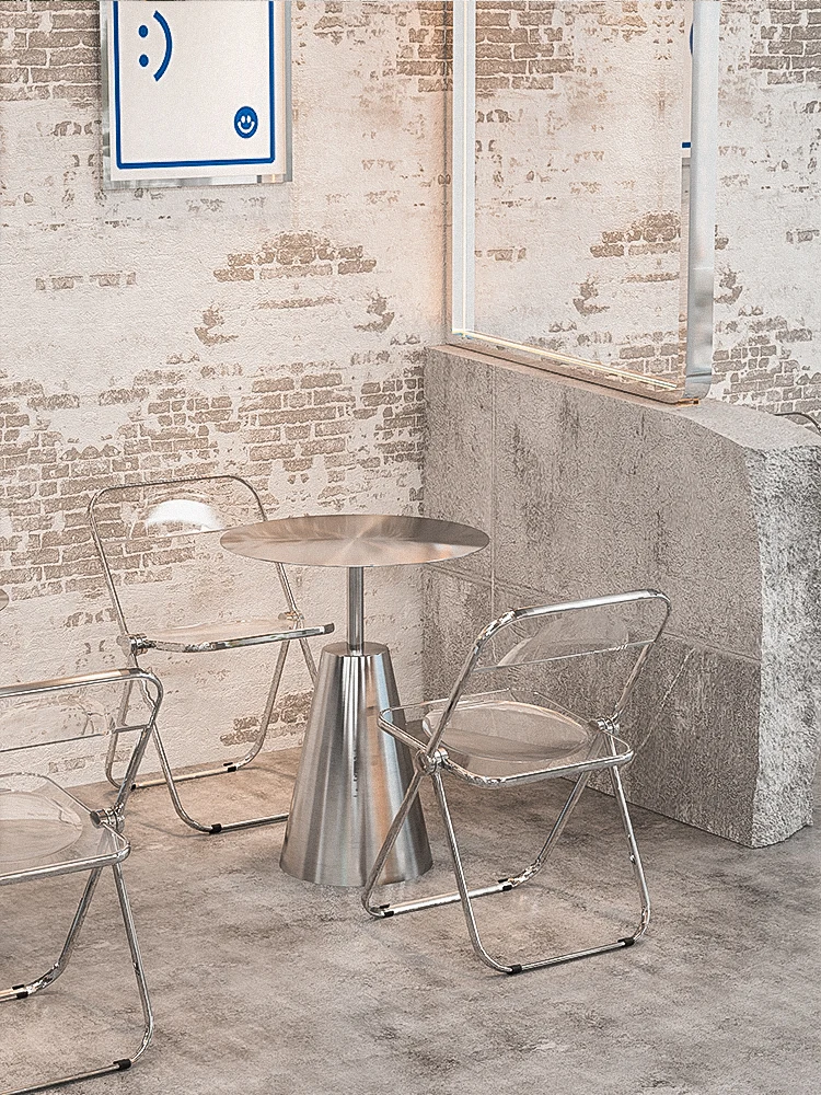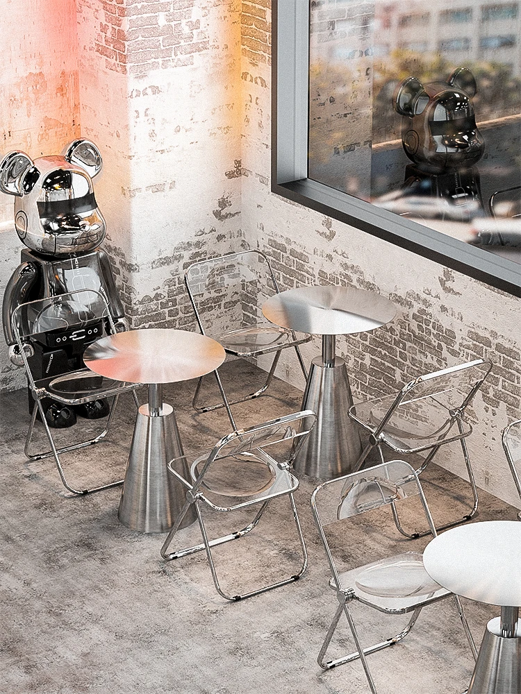 Milk Tea Shop Stainless Steel Small Coffee Table Industrial Style round Table Coffee Shop Table and Chair Combination - Купить с бесплатной доставкой