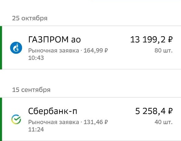 Полученные дивиденды и регулярное пополнение мы обменяли на 80 акций Газпрома по 164,99 на сумму 13199,2 р.