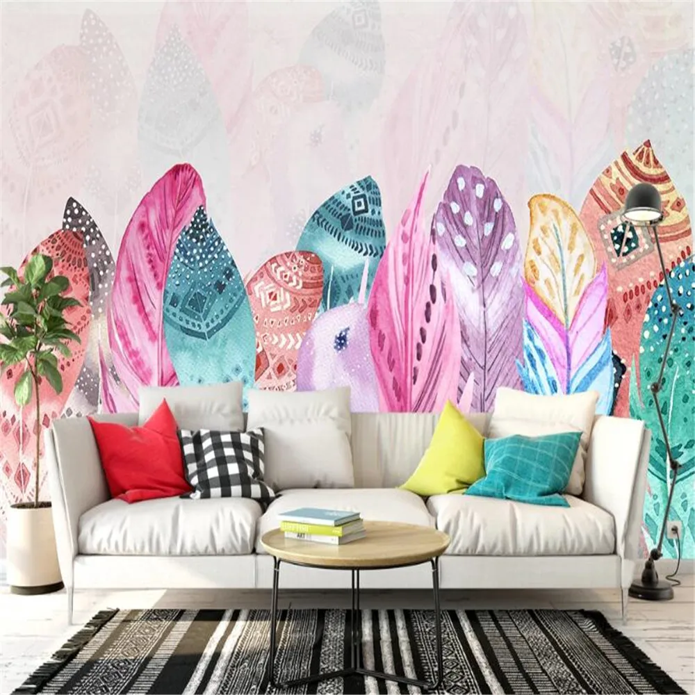 "Milofi custom 3D large mural wallpaper Nordic color hand-painted feather art pattern TV sofa background wall" * Buy Now Just For 9$
