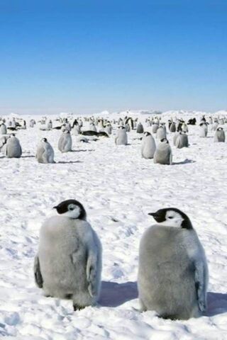 Много пингвинов на снегу собрались вместе . Красивые крупные птицы . Милые пингвины на снегу . Малыши прыгают в море со льда . Дикая картинка пингвинов . Длинные крылья Толстые птицы на снегу . . .