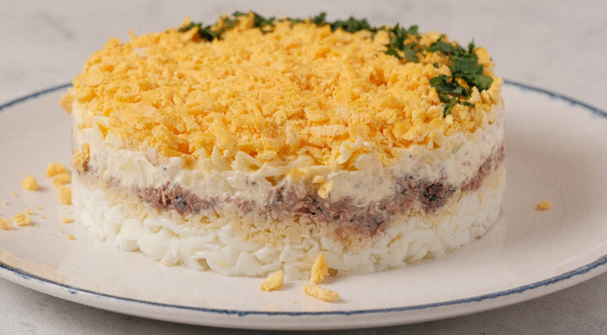 Мимоза с горбушей консервированной и рисом