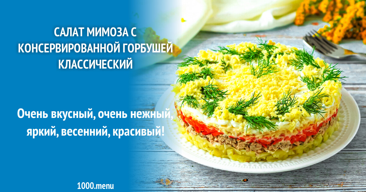 Мимоза с горбушей консервированной и рисом 107 фото
