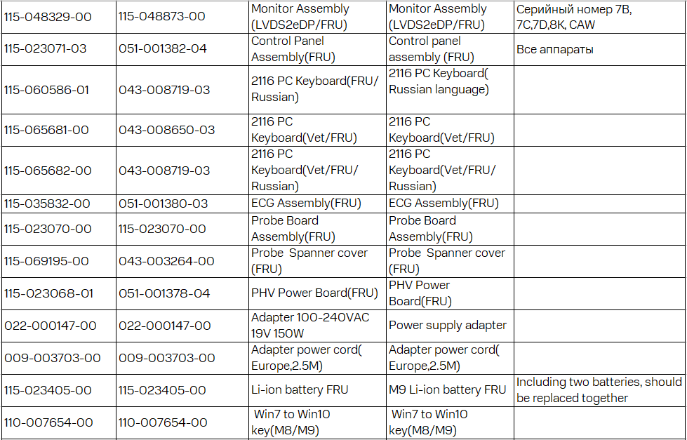 Внутри Mindray M9 стандартный состав: