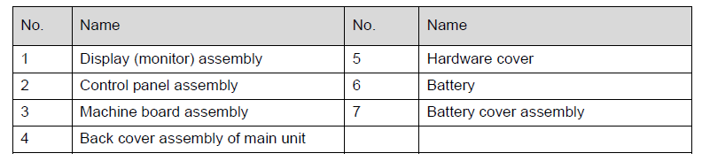 Таблица запасных частей