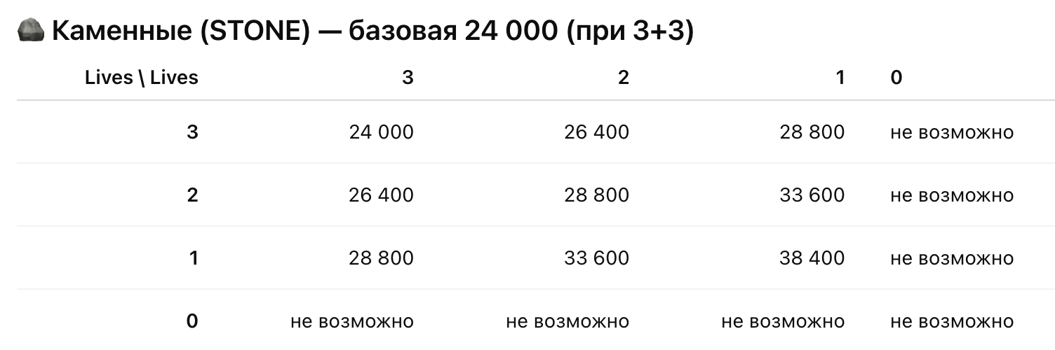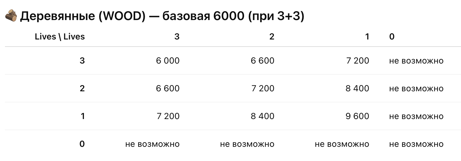- Жизни (нужно для крафта бывает 0/0, 1/1, 2/2 и самое большое 3/3)