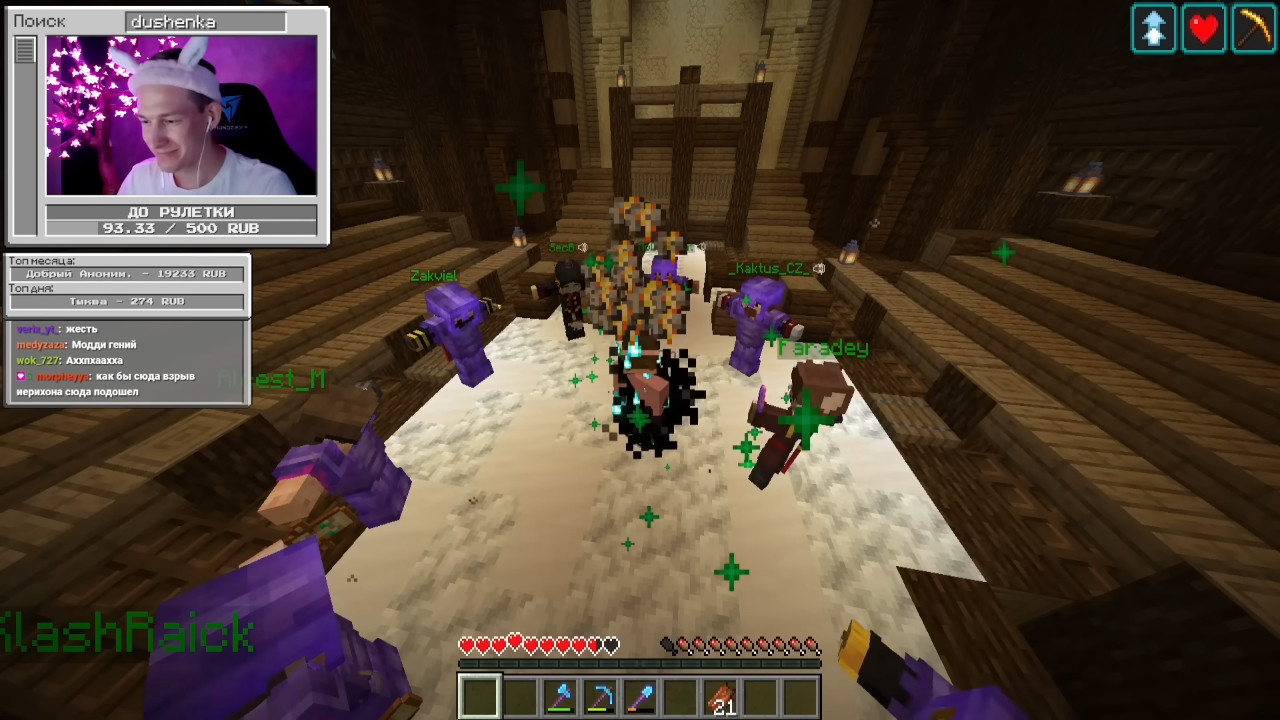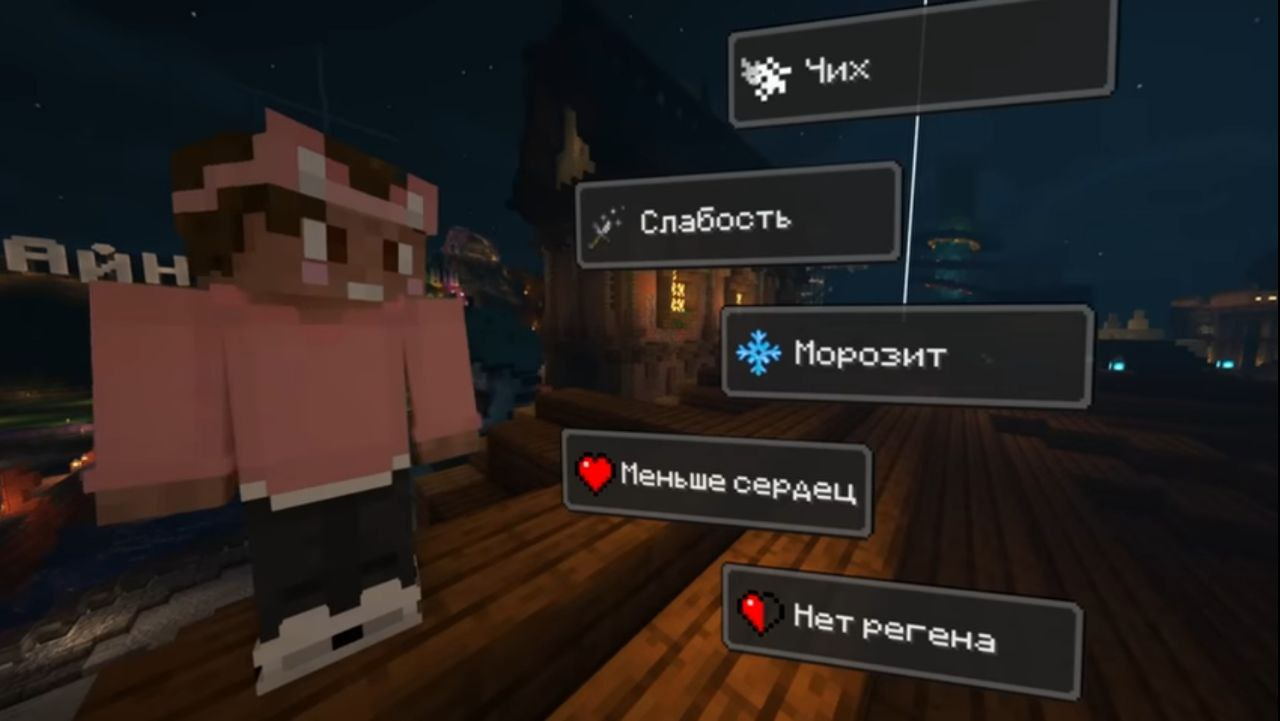 1) Антиэлитровщик: при полёте на элитрах или трезубце на игрока накладывается эффект тошноты и наносится постоянный урон. (Веназар, Джей, Кролик, Пугод, Модди, Клэш и Клайд).