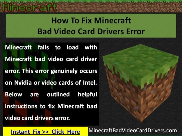 Four ways to fix " Bad Video Card Drivers" crash in Minecraft . Method One: Change Hardware Acceleration; Method Two: Roll back Driver; Method Three: Update Video Driver Manually; Method Four: Update Video Card Driver Automatically [Problem Description]