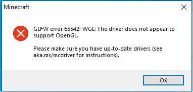 How to fix Minecraft GLFW error 65542 "The driver does not . . .