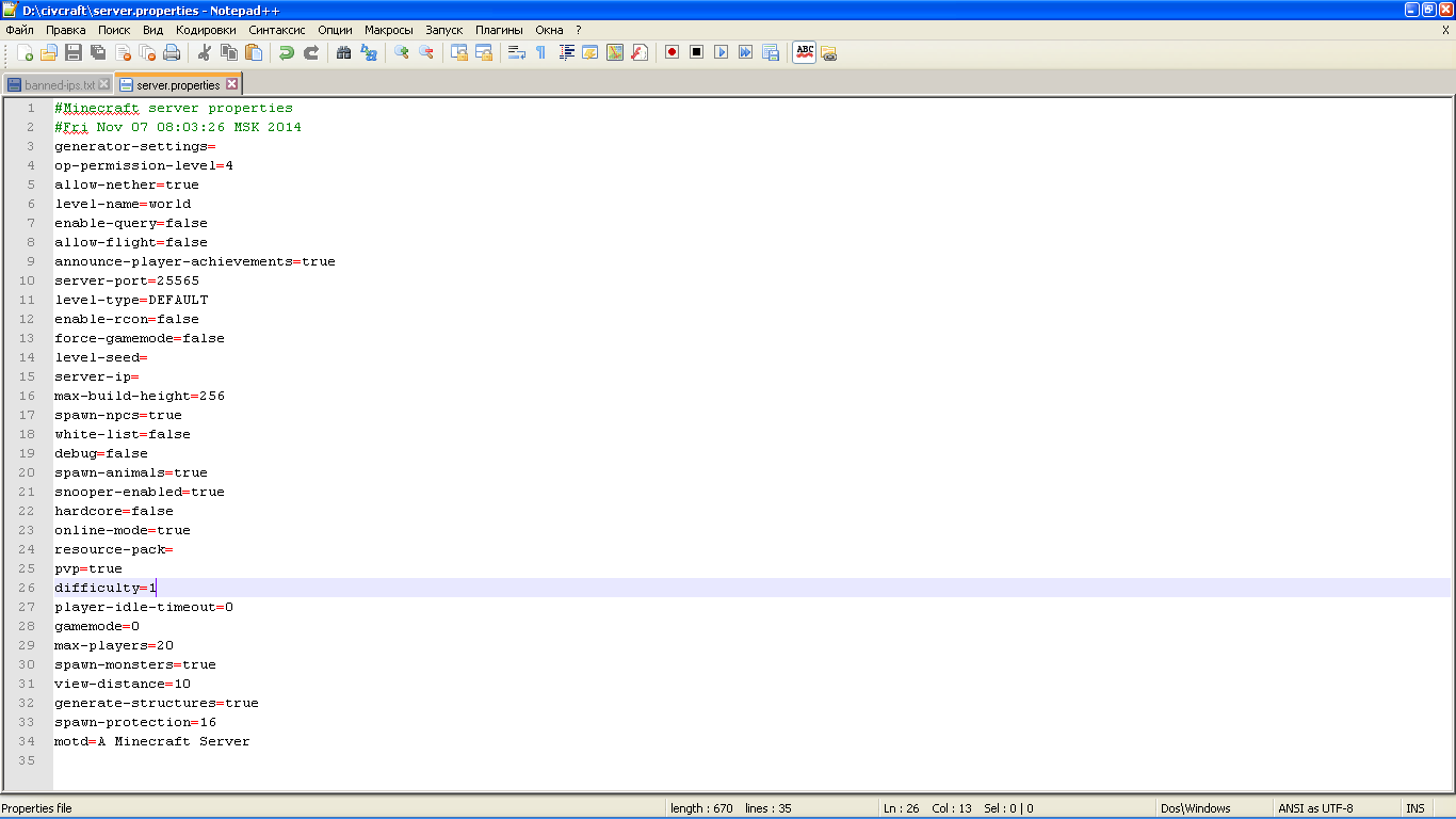 Minecraft server properties настройки - Q2E