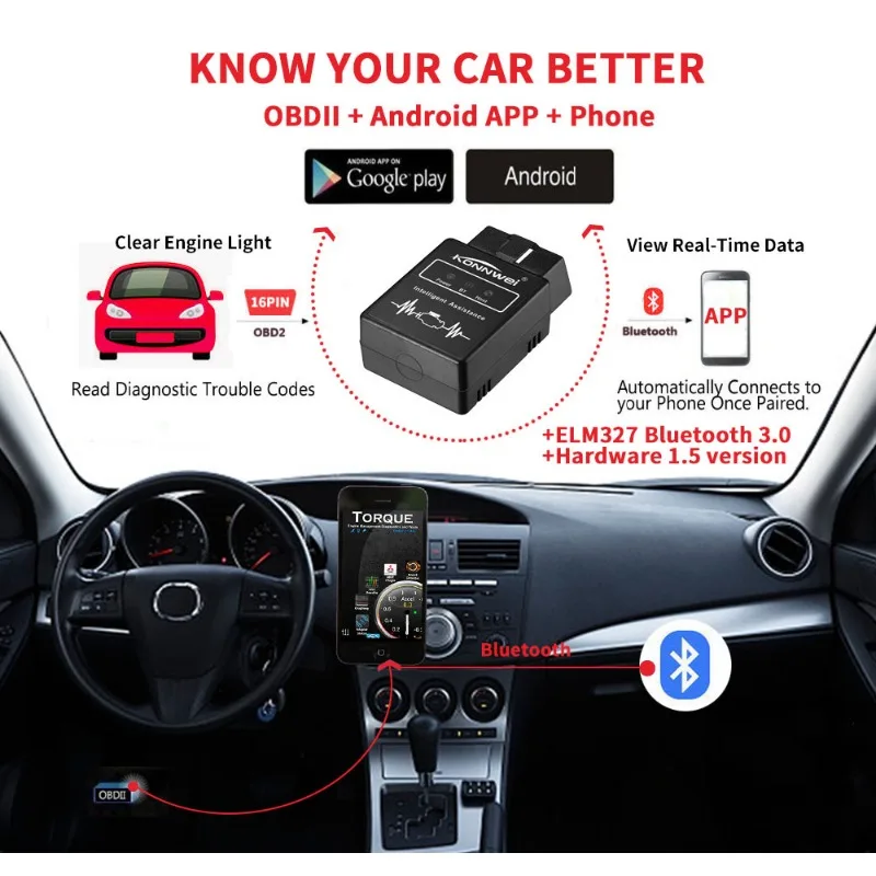 WuOhIONeHere you can buy Mini 12v Car Engine Fault Diagnosis Instrument Bluetooth ELM327 OBD2 Scanner Read Clear Error EOBD Scan Tools for Android Phones with free delivery to your post office.