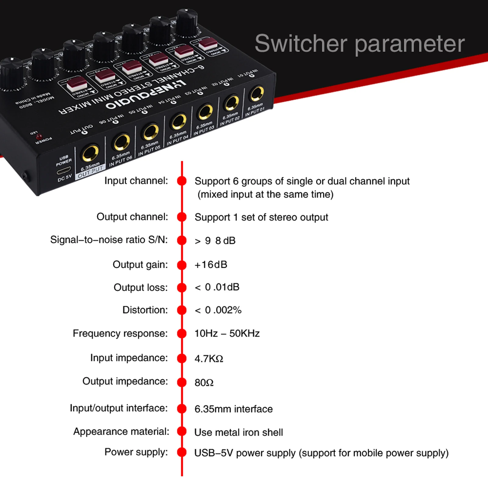 Mini 6-Channel Stereo Audio Mixer Musical Instrument Mixer Electric Wind/Electric Guitar/Electronic Piano Mixer 6.35 Interface - Купить с бесплатной доставкой