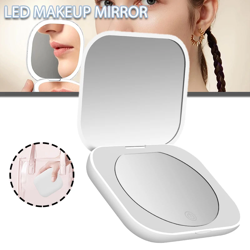 RMinscLqKUHere you can buy Mini Compact Led Makeup Mirror With Light Portable Travel Folding Makeup Mirror Double-Sided USB Rechargeable Dimmable Mirror with free delivery to your post office.