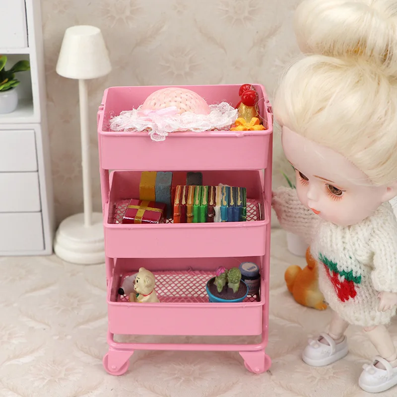 Mini Doll House Decoration Iron Art Cart Storage Rack Simulation Movable Handcart Floor Storage Rack - Купить с бесплатной доставкой