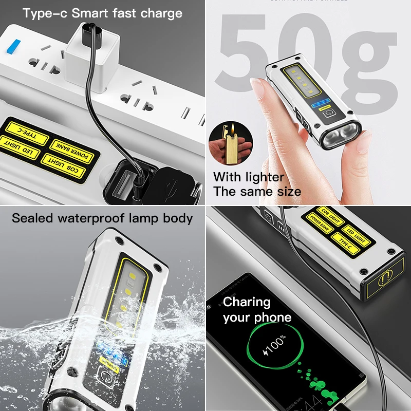 Mini Dual Light Source Torch Light Self Defense Strong Magnetic Adsorption Power Bank Work Light For Camping Fishing Flashlight - Купить с бесплатной доставкой