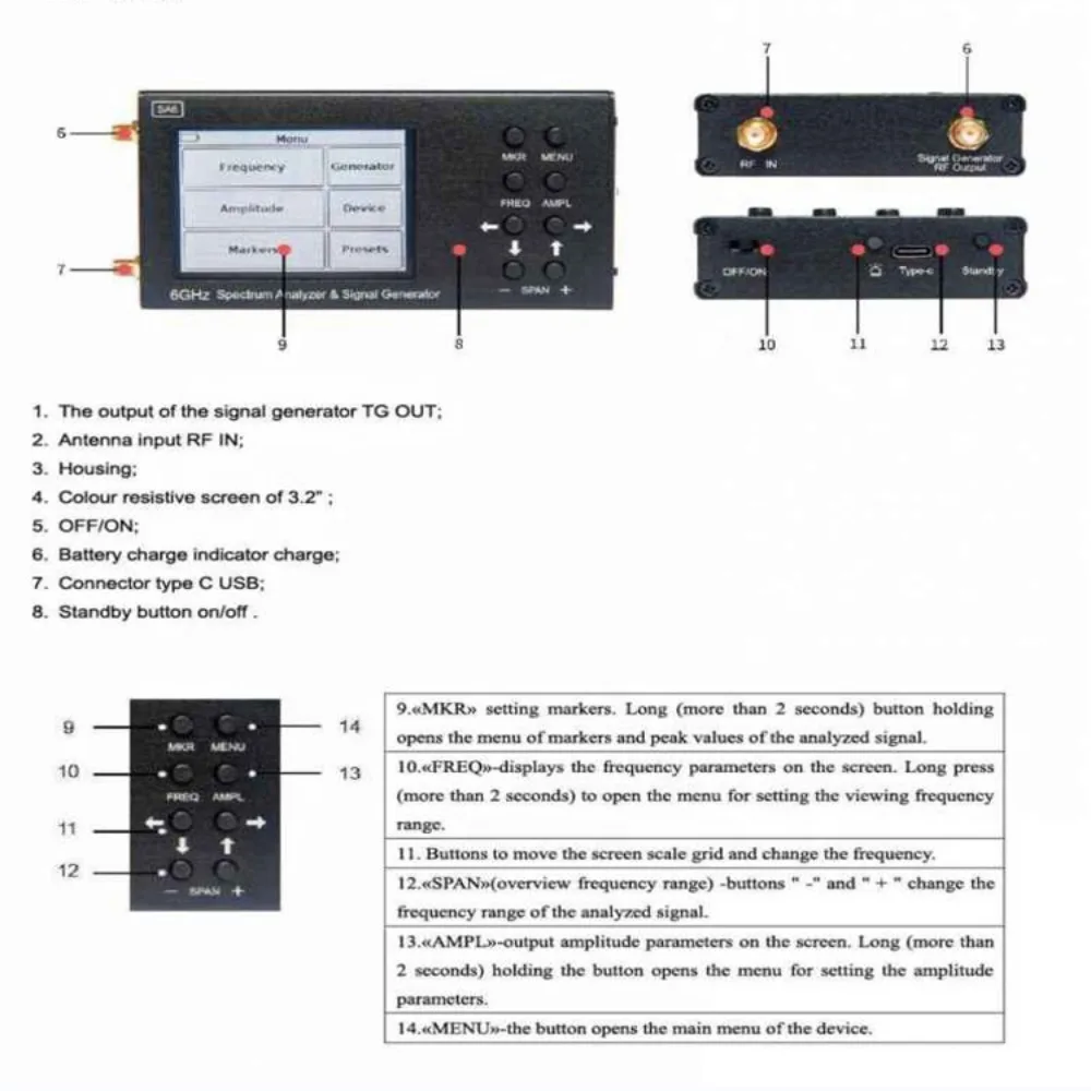 Mini Handheld Spectrum Analyzer 35MHz-4400MHz 3.2" LCD + RF Signal Generator Signal Source Sa6 Spectrum Analyzer - Купить с бесплатной доставкой