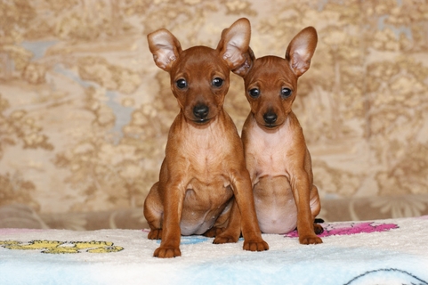 Мини пинчери на 40 дни . Цена: 120 лв . Миниатюрен Пинчер 1 месеца Мъжко, Женско Светло кафяво Чистокръвно . Продавам 4бр . малки пинчери на 40 дни, черното вече е продадено, налични са две мъжки и две . . .