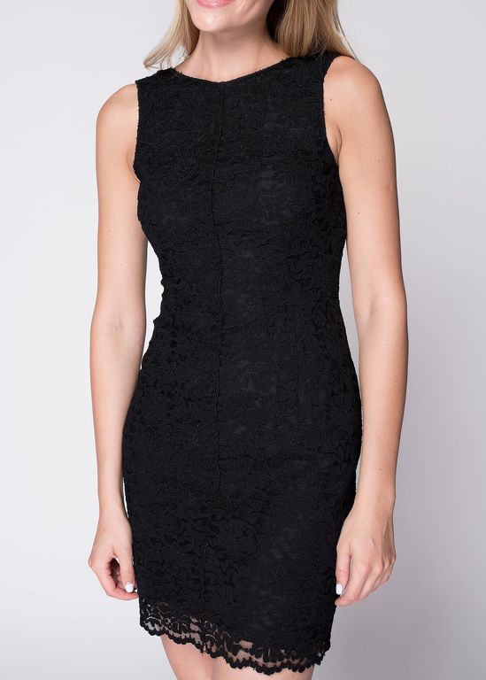 Короткое черное платье с кружевными вставками
