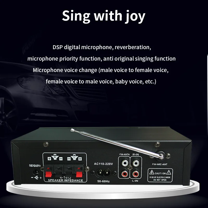 BafXPmJBBFHere you can buy Mini Power Amplifier DC 12V Bluetooth Dual Microphone Input for TF USB AUX Mobile Phone Computer DVD MP3 Player The Song Machine with free delivery to your post office.