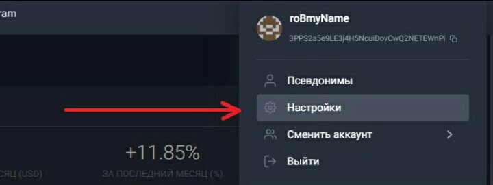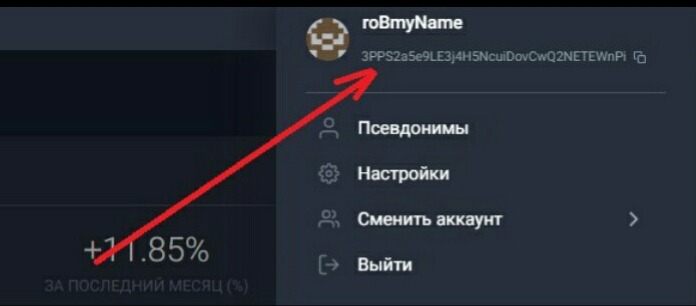 8. Далее адрес кошелька сможете скопировать кнопкой ниже юзернейма.
