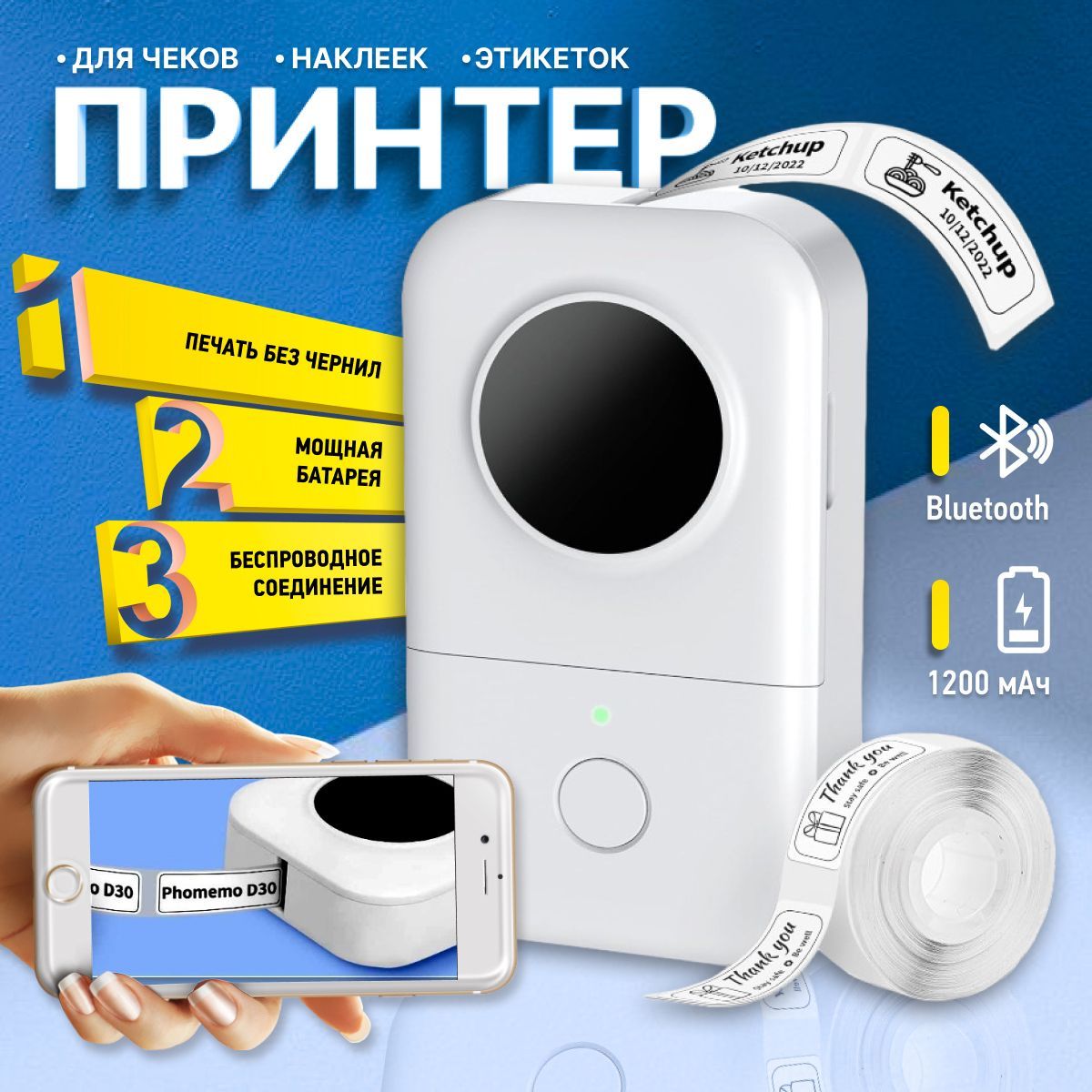Мини принтер печатающий наклейками