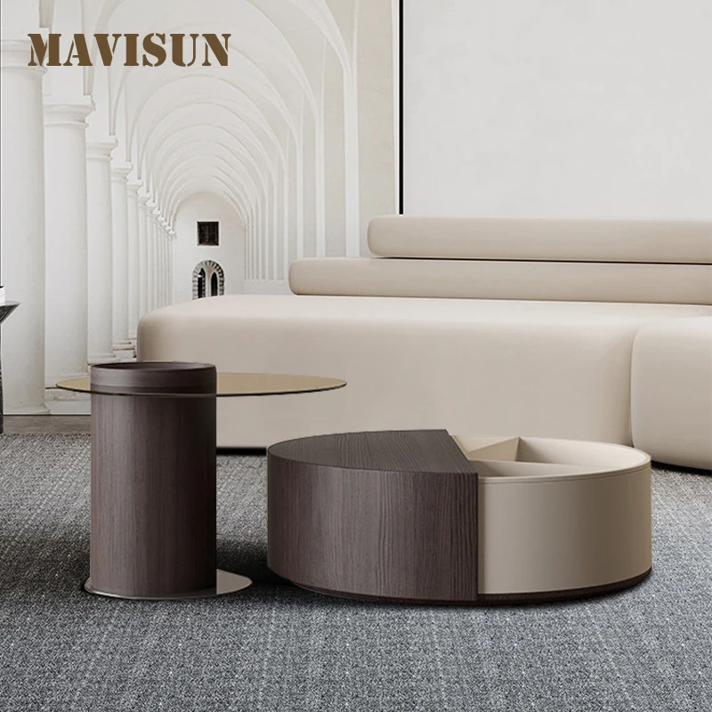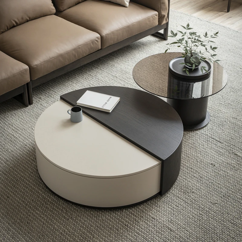 "Minimalist Solid Wood Table Set With Clear Texture For Living Room Rotating Storage Space Round Coffee Tables In Black And White" * Buy Now With Free Shipping Just For $1138