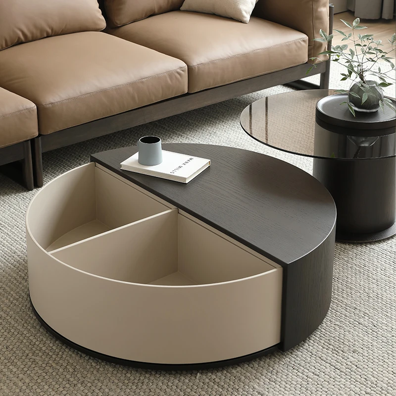 dYrXIlyOBLHere you can buy Minimalist Solid Wood Table Set With Clear Texture For Living Room Rotating Storage Space Round Coffee Tables In Black And White with free delivery to your post office.
