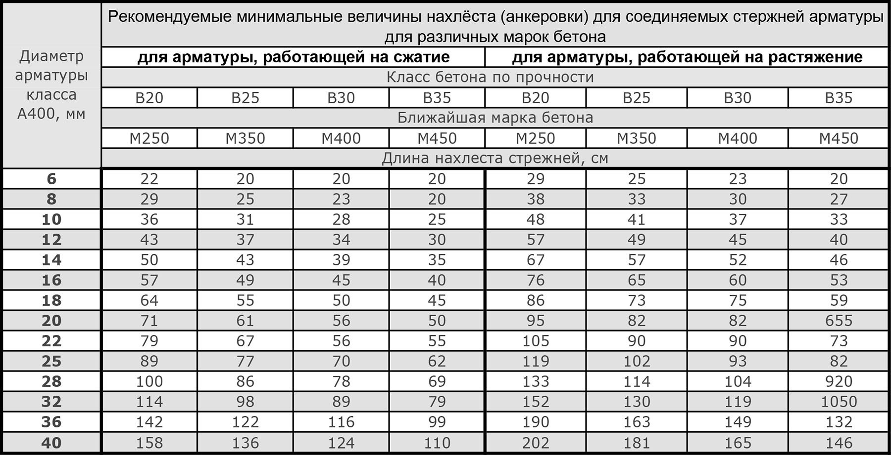 Минимальная длина арматуры