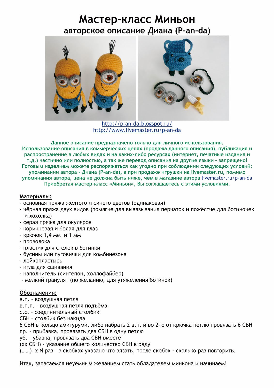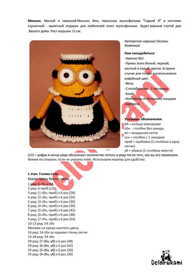 Миньоны вязания крючком