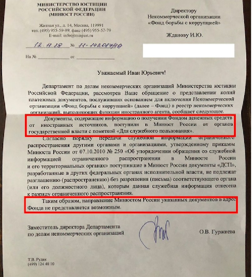 Минюст запрос документов