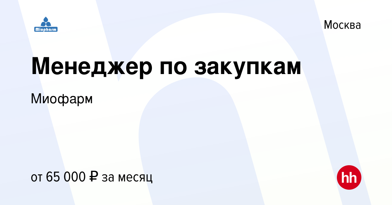 Вакансия hr менеджер в компании Миофарм . Зарплата: от 100000 до 130000 руб . . Москва . Требуемый опыт: 3-6 лет . Полная занятость . Дата публикации: 29 .10 .2021 .