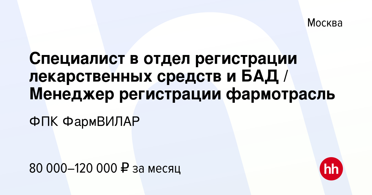 Вакансия hr менеджер в компании Миофарм . Зарплата: от 100000 до 130000 руб . . Москва . Требуемый опыт: 3-6 лет . Полная занятость . Дата публикации: 29 .10 .2021 .