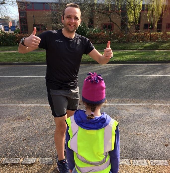 Джеймс с Dinton parkrun с помощью своих детей хоть как-то пытался создать себе атмосферу паркрана.