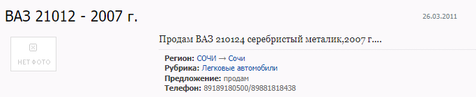 Поиск по указанным на сайте номерам приводит нас, например, к датированному еще 2011 годом объявлению о продаже автомобиля во все том же Сочи.