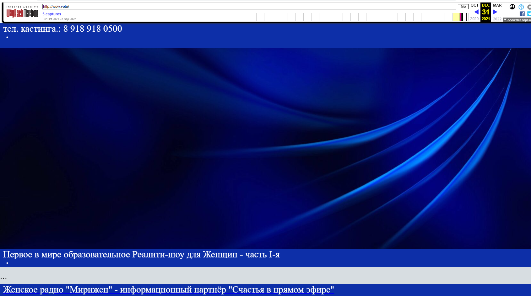Но, внезапно (!) по состоянию на 31 декабря 2021 года на том же сайте обнаружился уже совсем другой контент, никак не связанный с соцсетью.