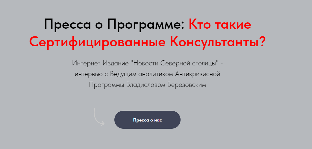 Для того, чтобы у посетителя сайта не было сомнений в том, что он имеет дело с серьезной организацией, на странице присутствует раздел "Пресса о нас".