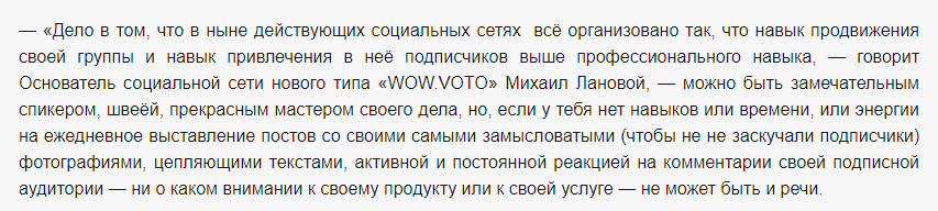 Переносимся на пару лет вперед и... Михаил Лановой уже основатель соцсети нового типа WOW.VOTO. К сожалению, сайт соцсети уже недоступен.