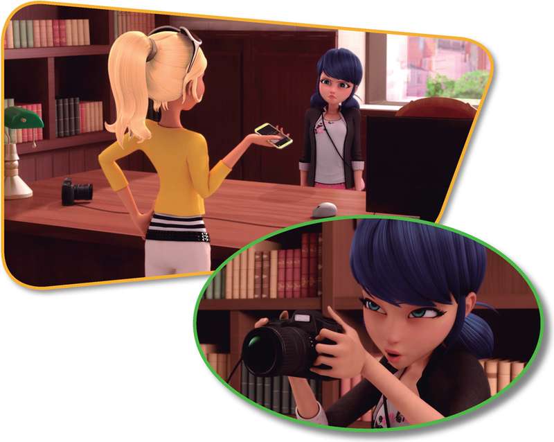 Marinette, por su parte, se coló en el despacho del director para encontrar la foto y borrarla.