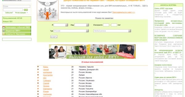 Поиск по анкетам и форумы на разные темы, ВИЧ + Знакомства . Добро пожаловать на первый сайт - людей, которых объединил ВИЧ. ЭТО - первая .