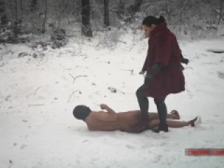 Mistress boots trampling snow