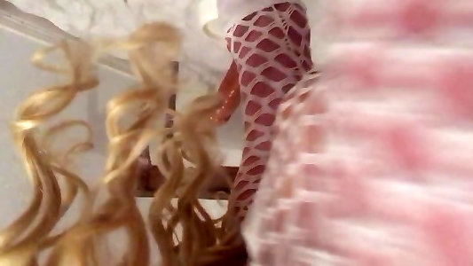 Une grande blonde en rut se gode les trous